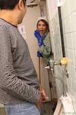 映画館で映画を観終わった男性がトイレに行くと美人な掃除婦・小泉真希が腰をくねらせながら、床を磨いている!男性はコソコソしながら小便をしようとすると、真希は掃除をしながらチンコをガン見しまくり!男性は真希に注意をしようとするが、清掃着から乳首がチラチラ見えてるじゃないのッ!こ、これは誘惑のサイン?男性が頭の中でそんな妄想を描いていると、いつの間にか男性のチンコがフル勃起しちゃってる!